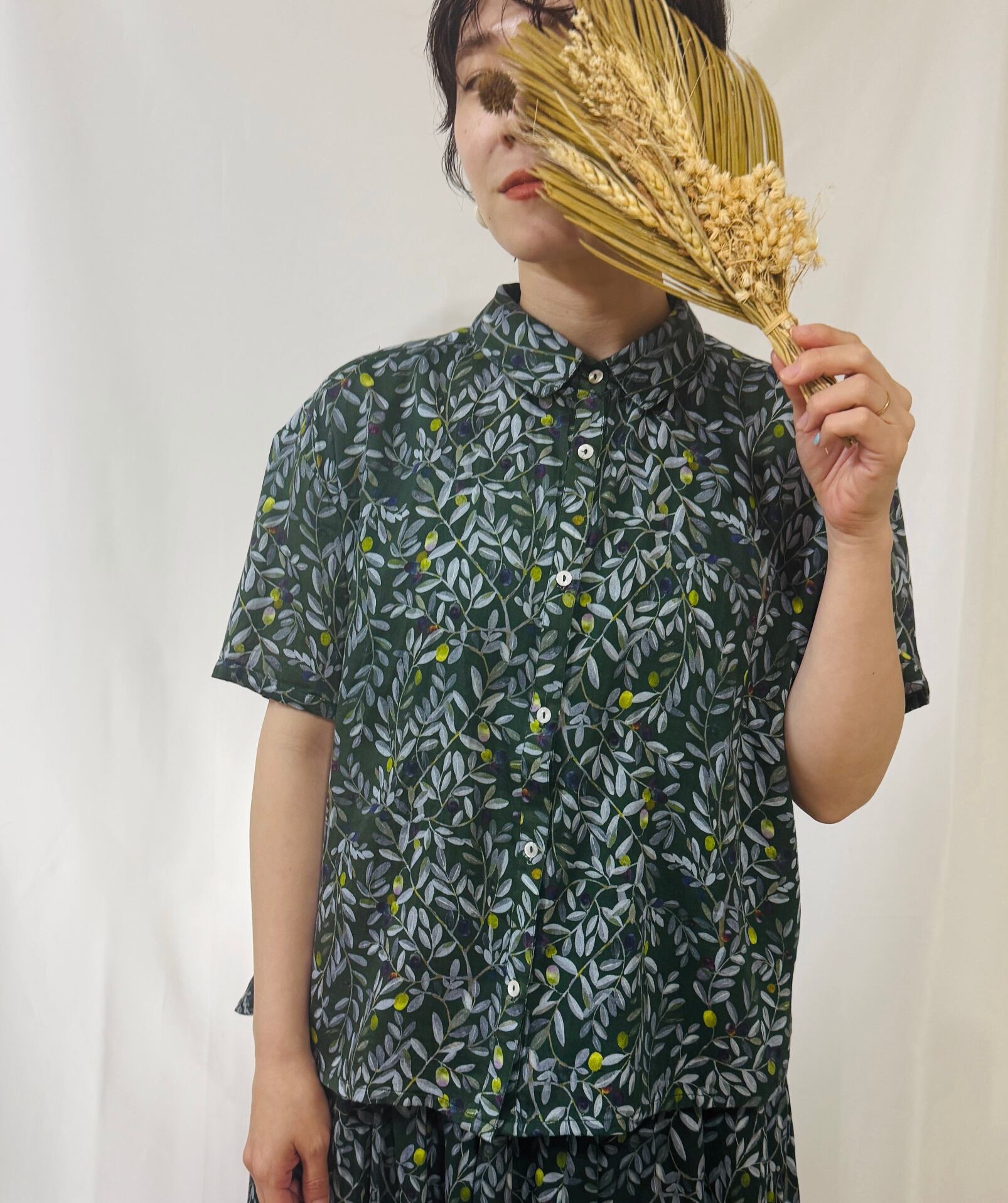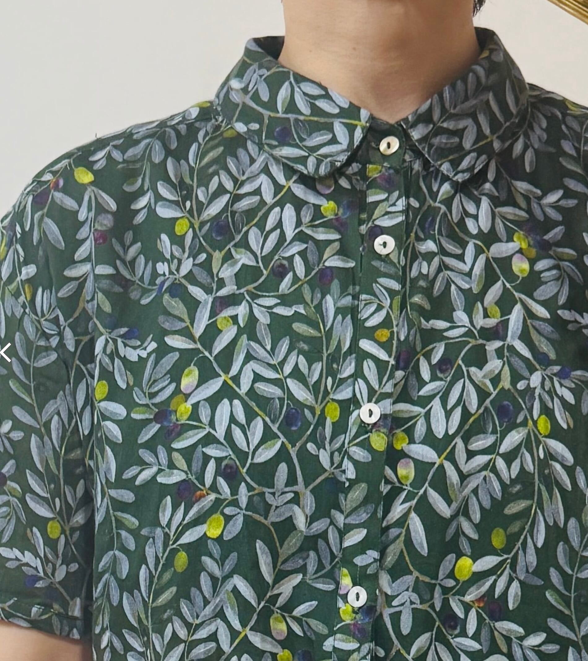 オリジナルのテキスタイルで作ったボタンブラウス。