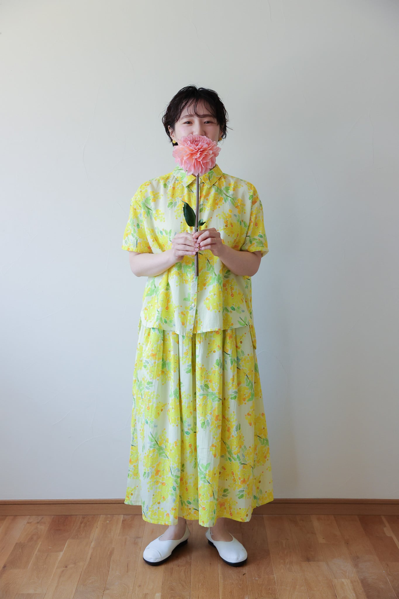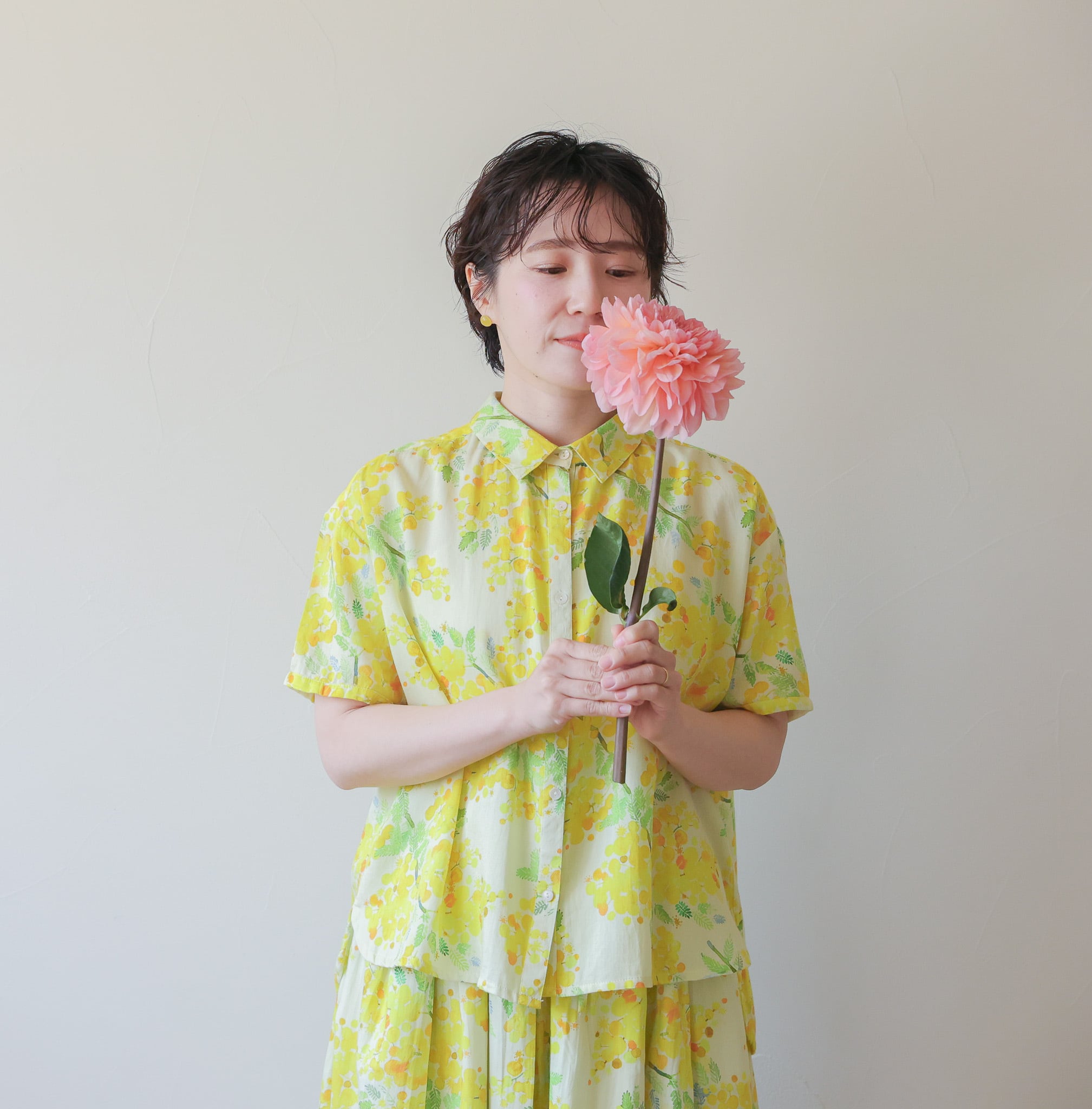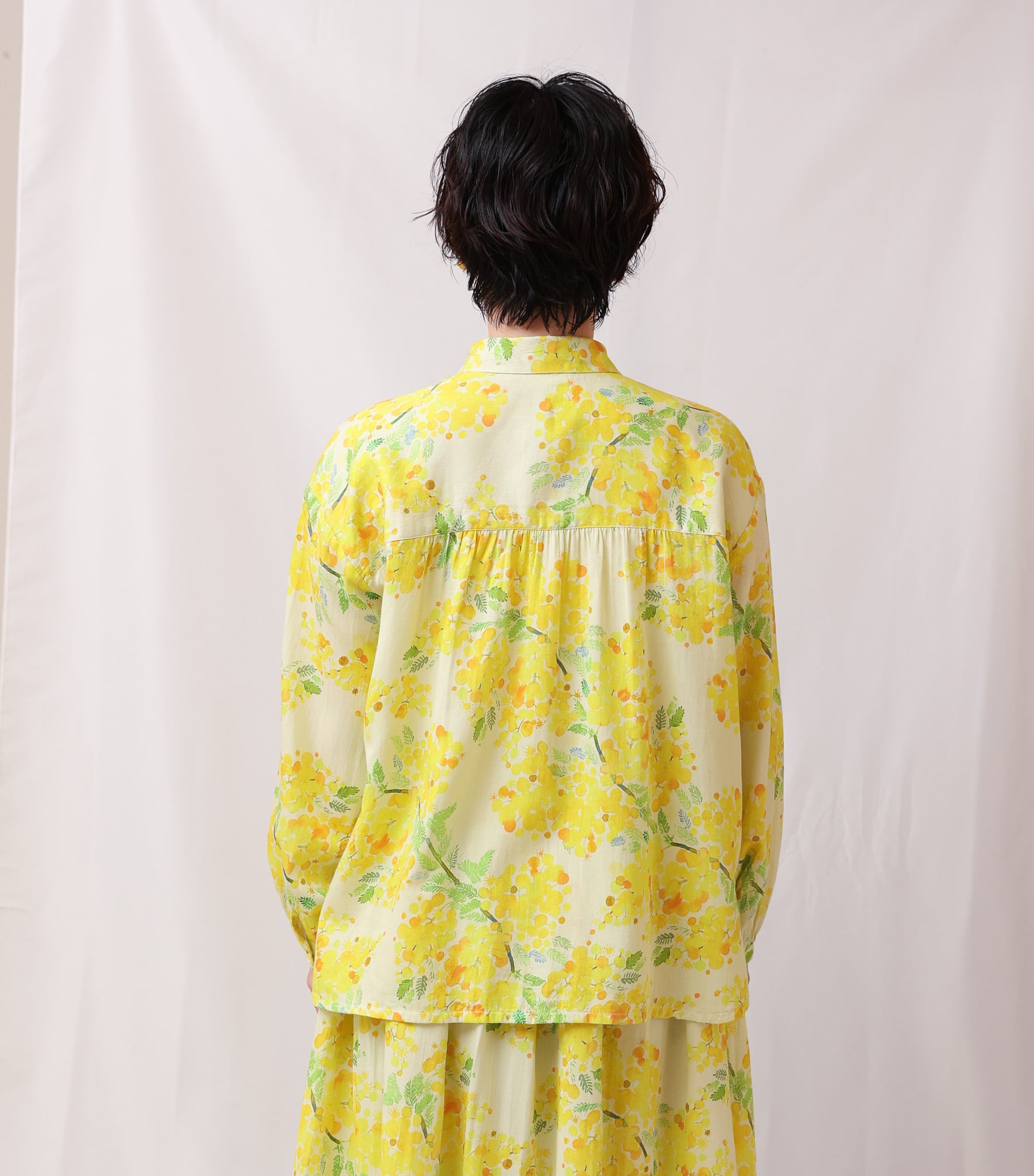 オリジナルのテキスタイルで作ったボタンブラウス。