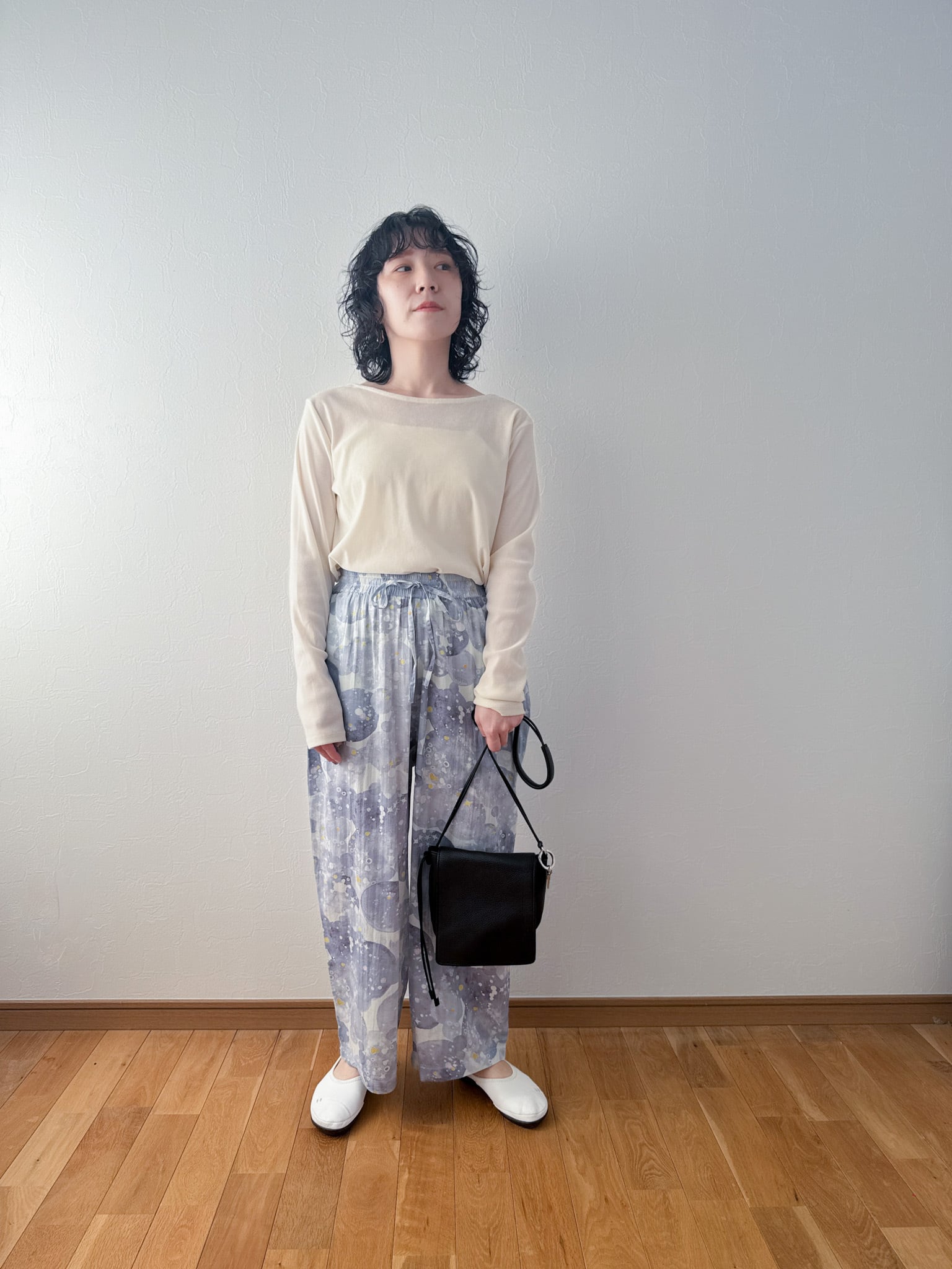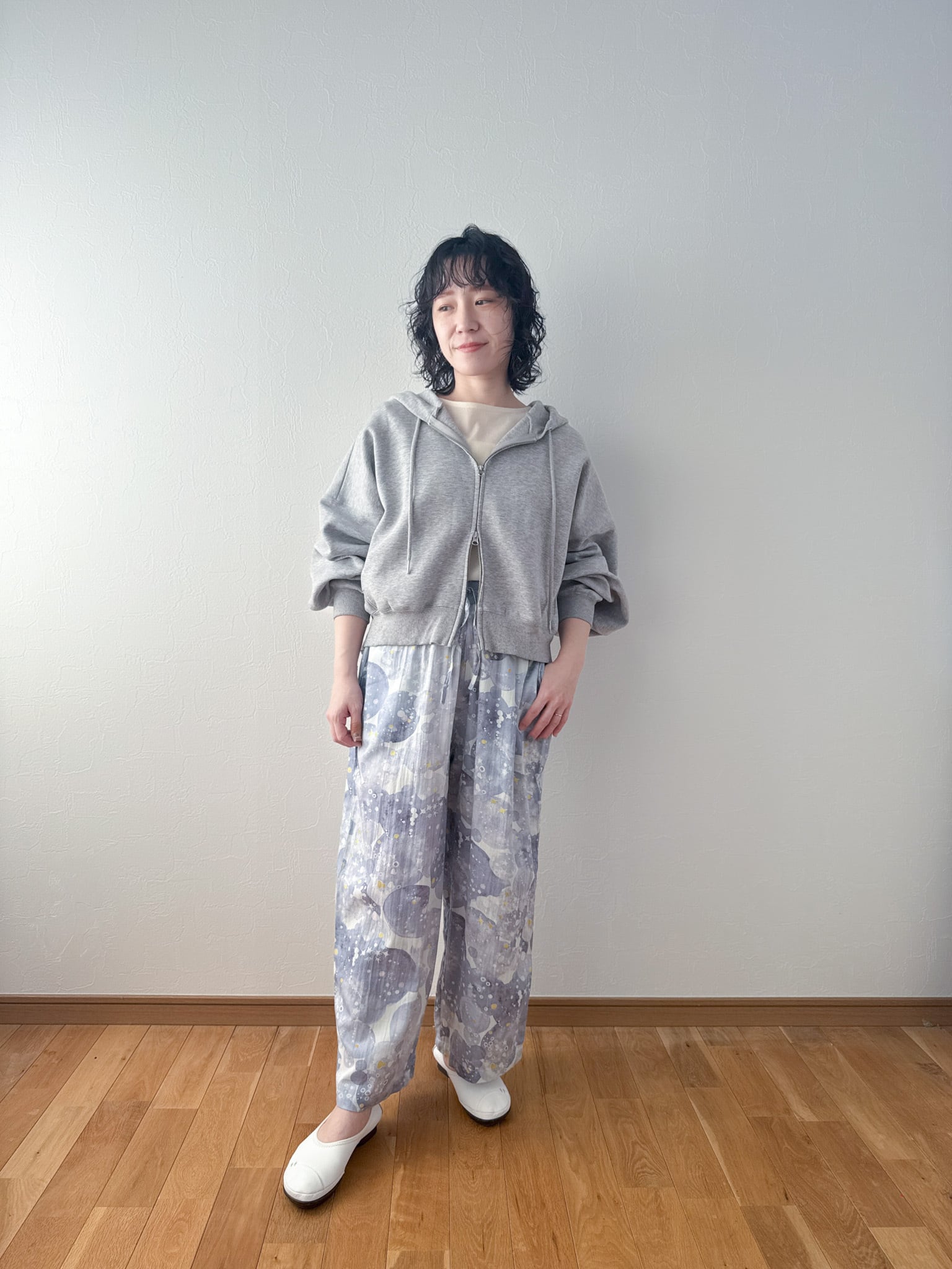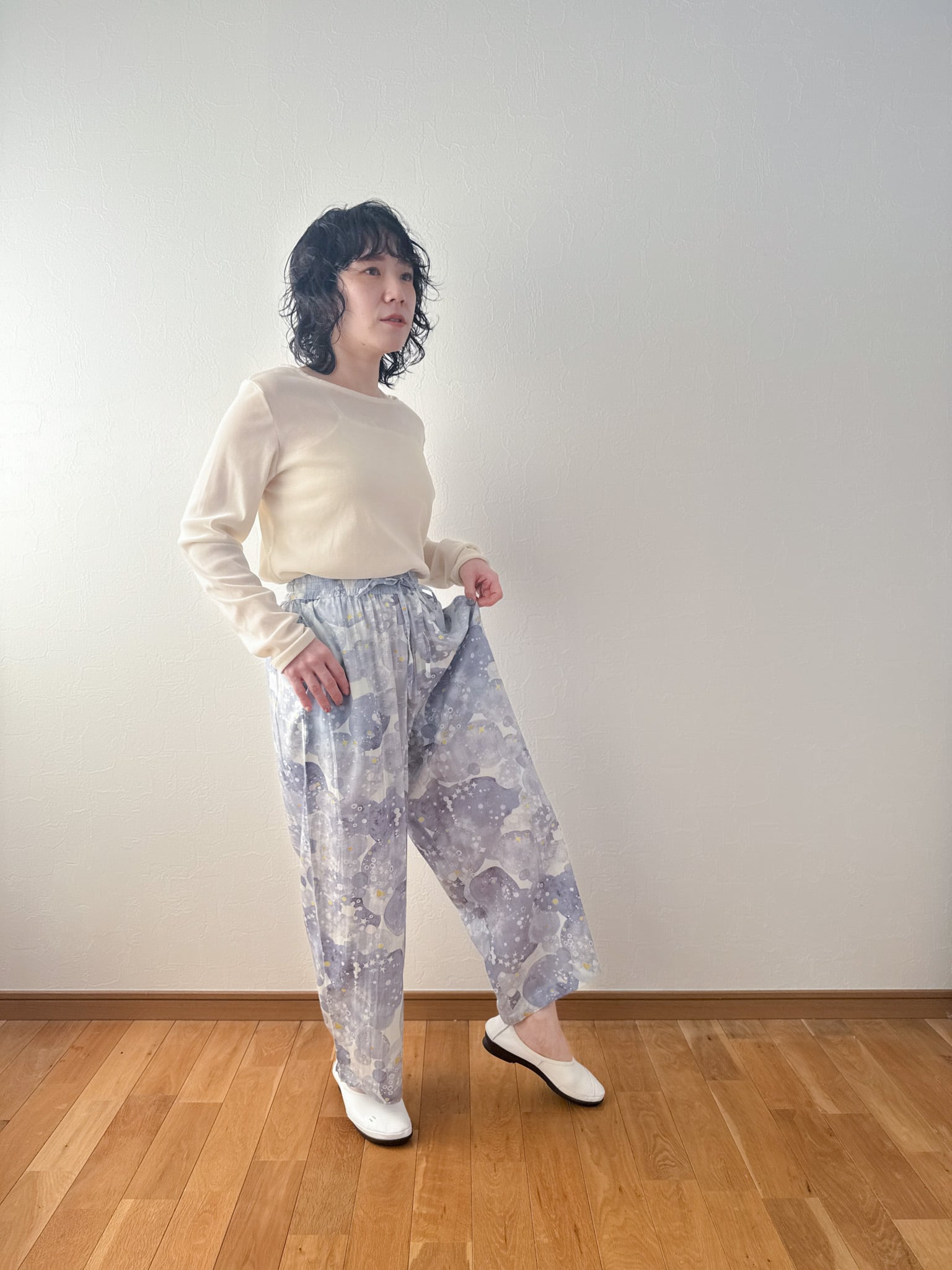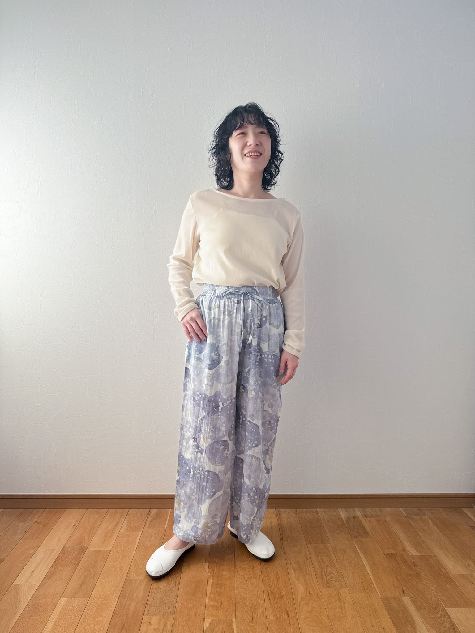 ゆったりとしたワイドシルエットで動きやすく、