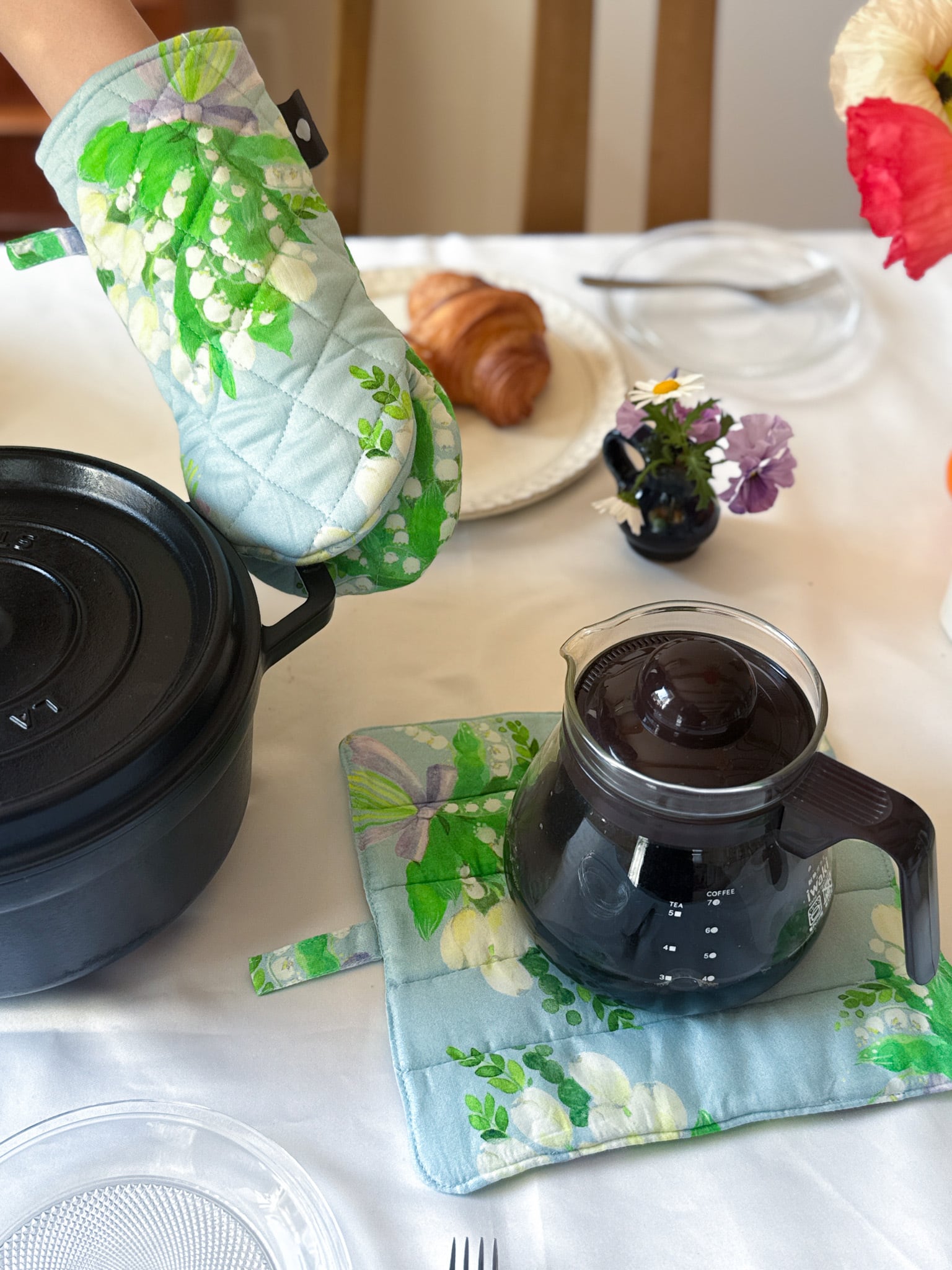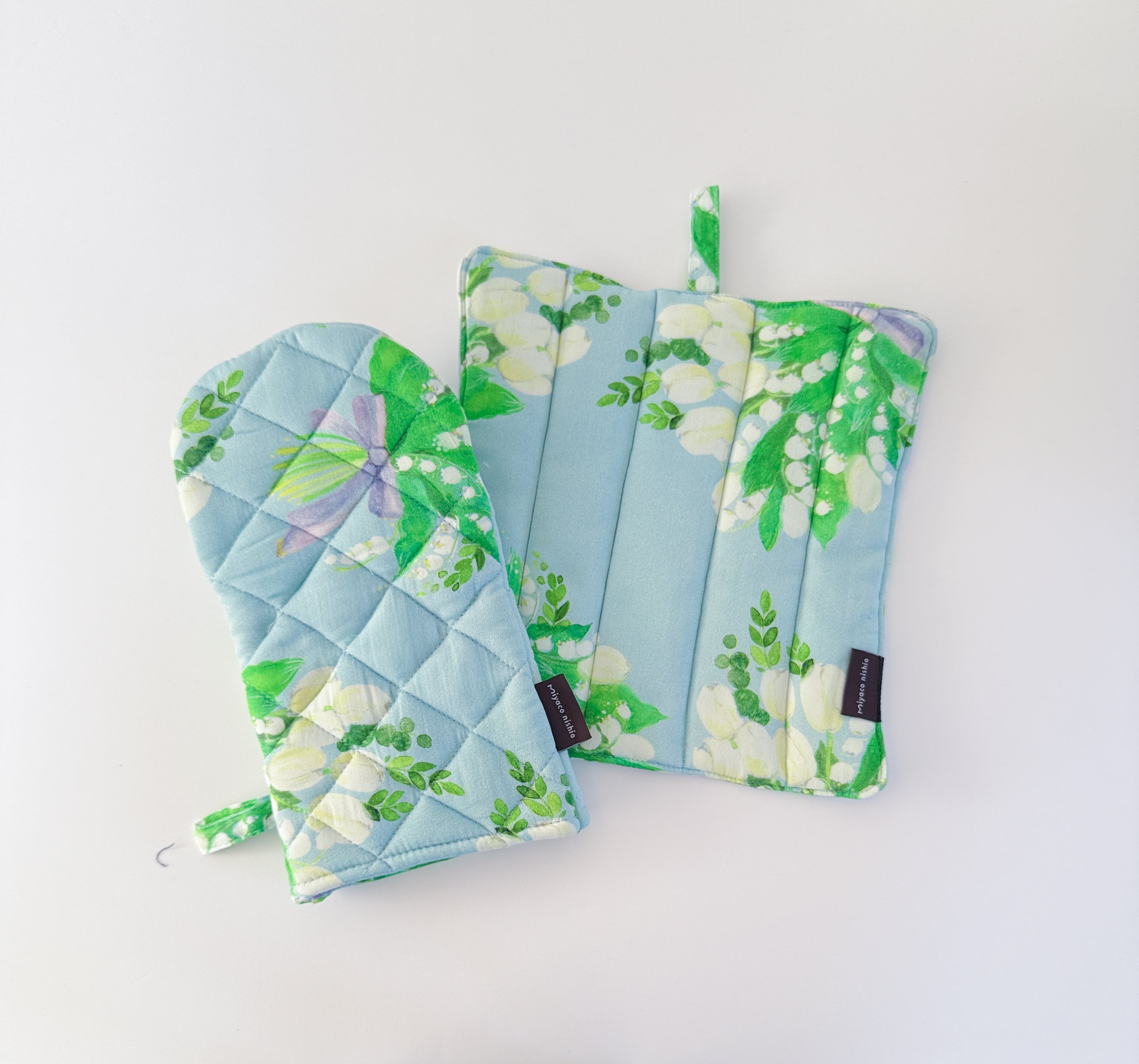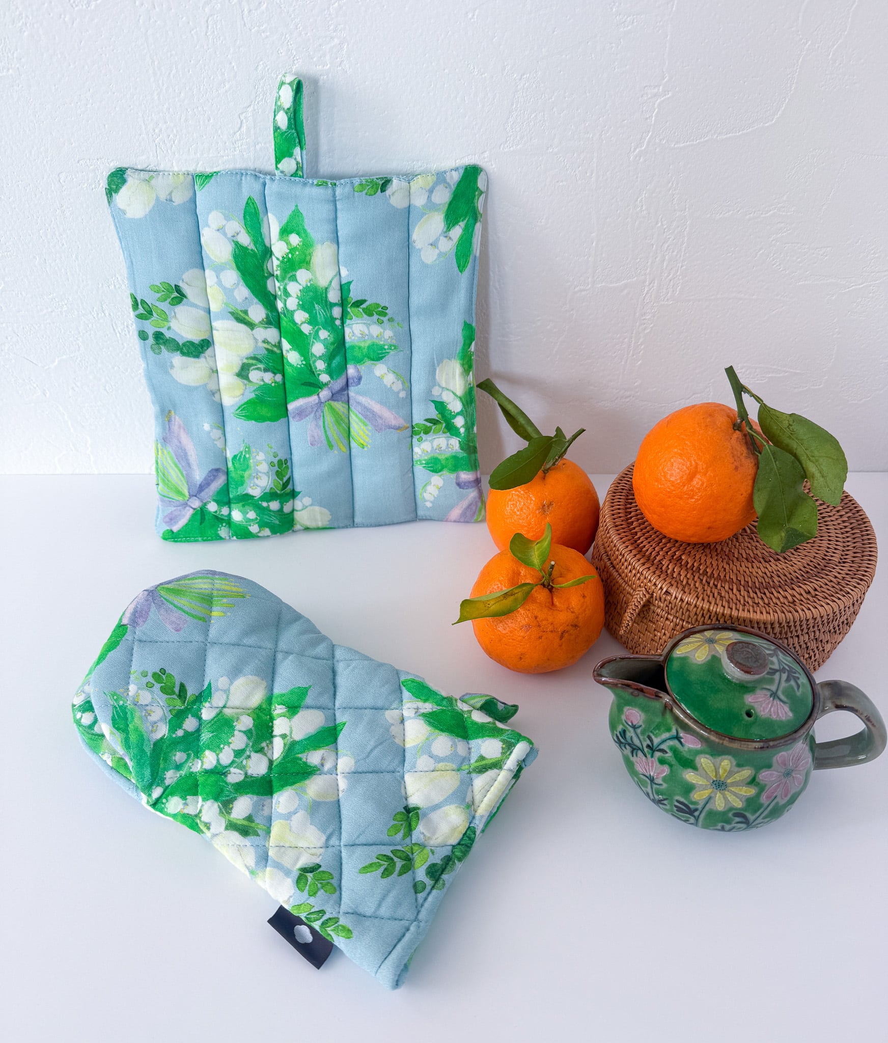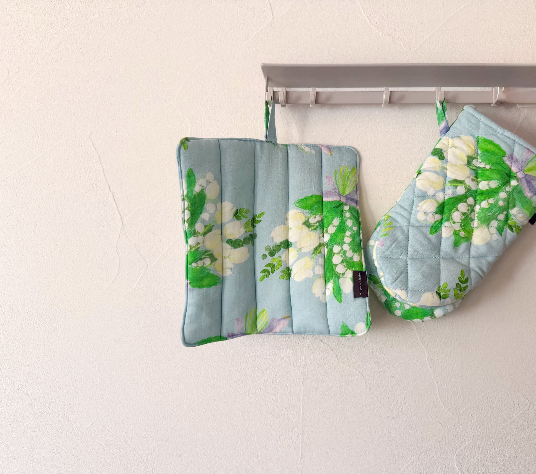 母の日&引越しのお祝いに|キッチンミトン&マットセット〈すずらん〉