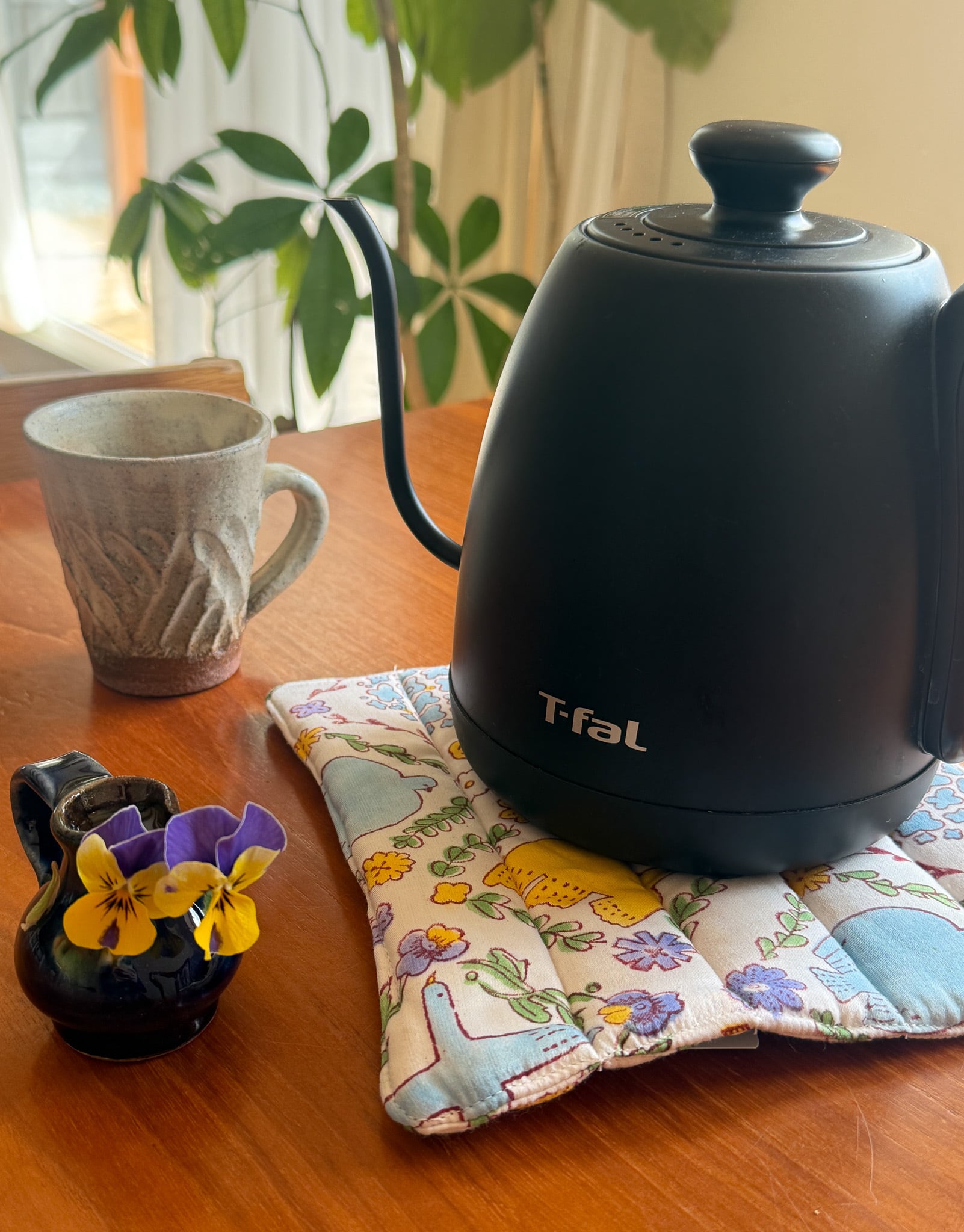 鍋の蓋の上にいる時も可愛いし、ポットの下にいる時も可愛いです。