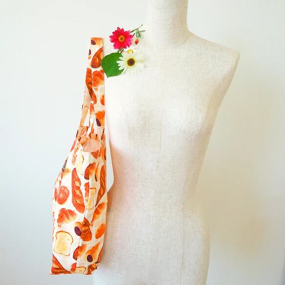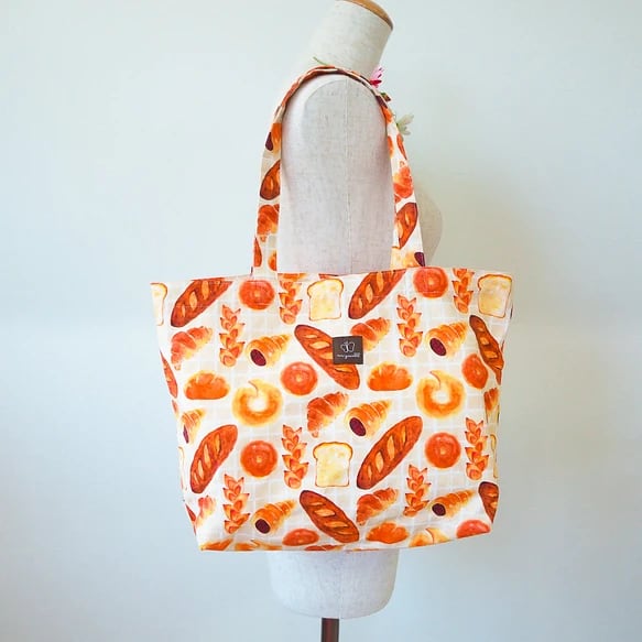 オリジナル生地のトートバッグ、エコバッグにも 「Oishii パン」