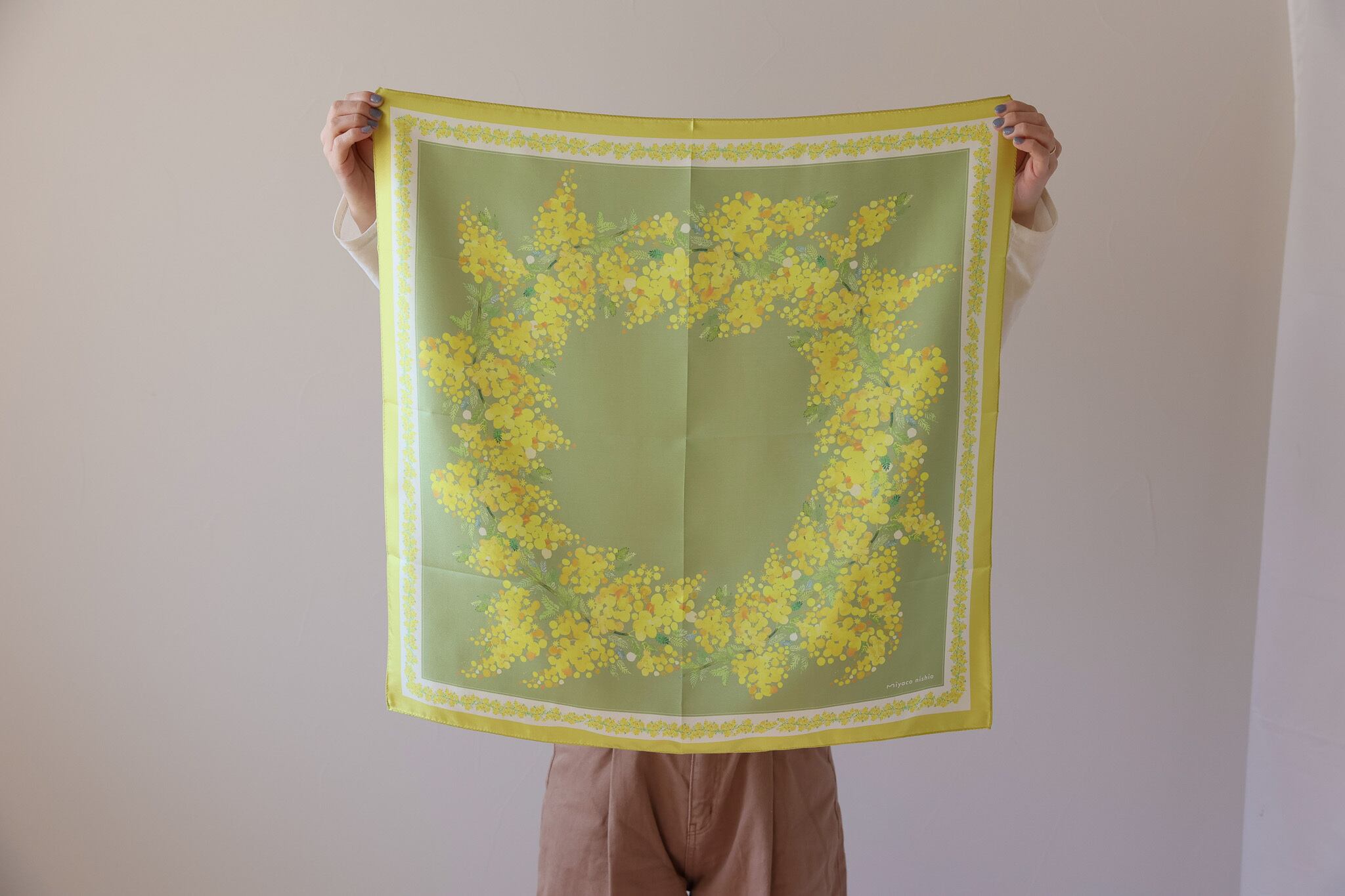 水彩画のシルクスカーフ「mimosa」は、